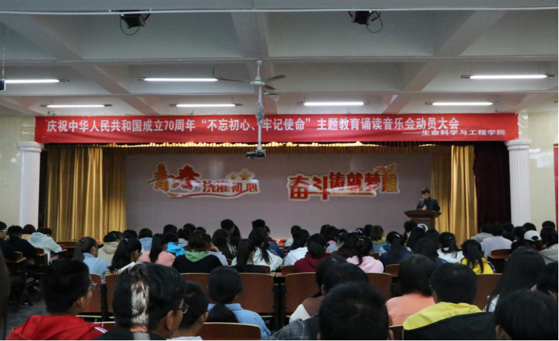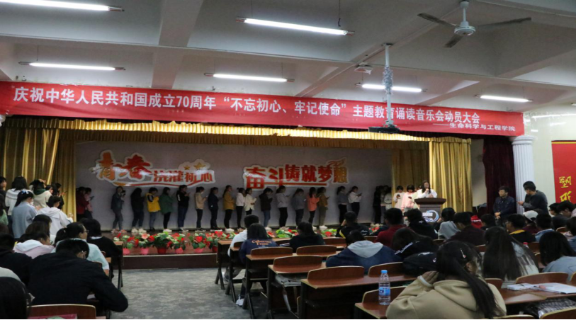 為貫徹“不忘初心、牢記使命”主題教育精神,引導(dǎo)全院學(xué)生學(xué)習(xí)貫徹習(xí)近平新時(shí)代中國特色社會(huì)主義思想,增強(qiáng)“四個(gè)意識”、堅(jiān)定“四個(gè)自信”、做到“兩個(gè)維護(hù)”,豐富校園文化生活,培育愛國主義精神,以詩歌朗誦形式禮贊偉大祖國。365英國上市官方網(wǎng)站于2019年10月21日下午4:30在學(xué)生發(fā)展中心四樓召開慶祝中華人民共和國成立70周年“不忘初心、牢記使命”主題教育誦讀音樂會(huì)動(dòng)員大會(huì),共計(jì)150余人參加了此次大會(huì)。