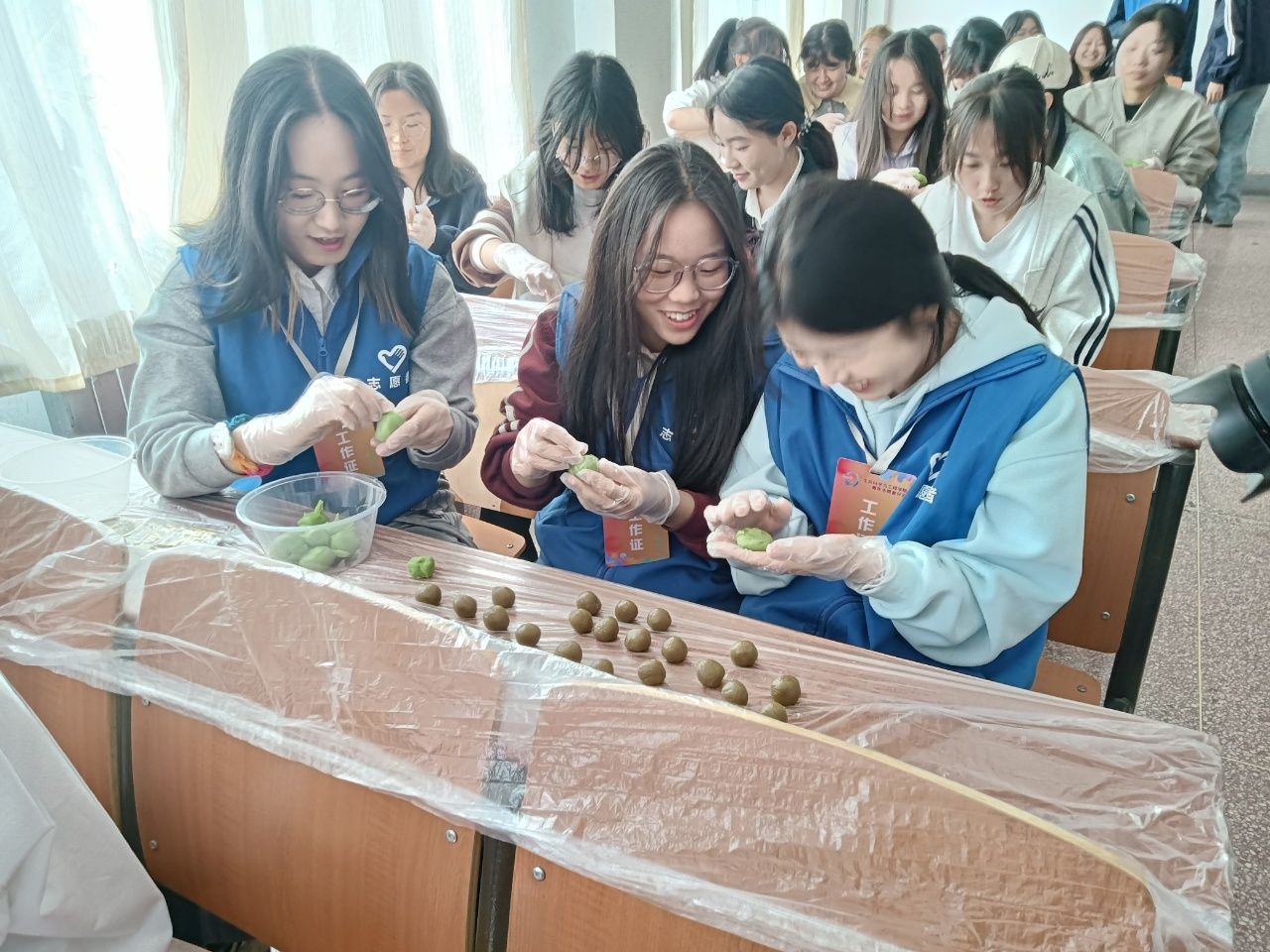 活動(dòng)中,同學(xué)們首先了解了關(guān)于清明節(jié)制作青團(tuán)的歷史淵源和文化意義,以及這一傳統(tǒng)習(xí)俗背后深厚的文化底蘊(yùn)。在專業(yè)老師的指導(dǎo)下,同學(xué)們認(rèn)真學(xué)習(xí)了青團(tuán)的制作方法,從采摘艾草、制作青汁,到和面、包餡、蒸煮,同學(xué)們分工明確,互相幫助,有的負(fù)責(zé)揉面,有的負(fù)責(zé)包餡,還有的負(fù)責(zé)裝飾,現(xiàn)場氣氛熱烈而和諧。經(jīng)過大家的共同努力,一個(gè)個(gè)翠綠、軟糯的青團(tuán)新鮮出爐。