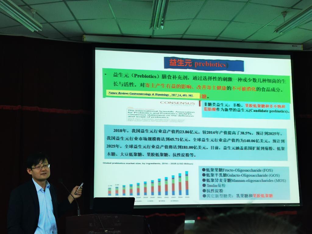 報告會上,倪永清教授向師生們細致講解益生菌、益生元、合生元和后生元的概念,詳細介紹微生物組學這一研究前沿的進展,深入剖析腸道微生物與母嬰健康的關系,最后分享了自己的科研經(jīng)歷和切身感悟。報告前沿生動,科學研究與生產(chǎn)應用相結(jié)合,博得了參會師生的共鳴及熱切回應。