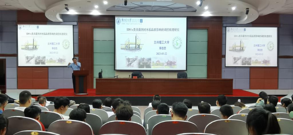 5月22日下午,應(yīng)365英國(guó)上市官方網(wǎng)站邀請(qǐng),蘭州理工大學(xué)李志忠教授在圖書館二樓報(bào)告廳作了題為“SDHIs類殺菌劑對(duì)水稻品質(zhì)影響的調(diào)控機(jī)理研究”的學(xué)術(shù)報(bào)告。報(bào)告會(huì)由365英國(guó)上市官方網(wǎng)站負(fù)責(zé)人主持,全院師生200余人參加了報(bào)告會(huì)。