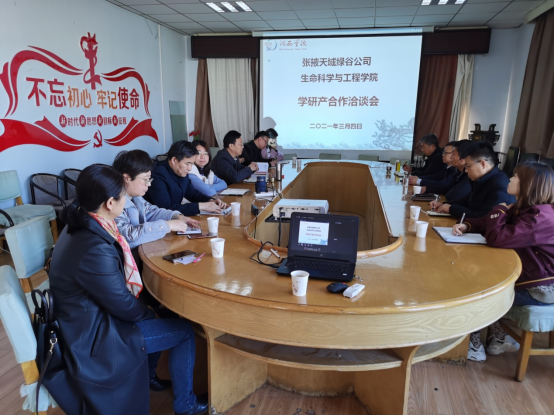 學(xué)院領(lǐng)導(dǎo)向戴董一行5人表示熱烈歡迎,并從人才培養(yǎng)、科學(xué)研究和社會服務(wù)等三個方面介紹了學(xué)院的基本情況,重點介紹了專業(yè)建設(shè)、實驗室建設(shè)、科研及產(chǎn)學(xué)研合作成效。會上,雙方從人才合作、技術(shù)合作兩個方面進行詳細的對接交流,將以項目為紐帶,以成果轉(zhuǎn)化為導(dǎo)向,促進學(xué)研產(chǎn)深度融合,在寒旱農(nóng)業(yè)新品種原材料質(zhì)量分析、畜禽骨基天然調(diào)味料的開發(fā)、廢棄物資源化等方面開展合作。