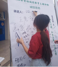此次活動以張貼海報、展板方式擴(kuò)大活動宣傳,通過誠信簽名方式作為“誠信教育”系列活動的啟動儀式,是我院誠信資助育人工作的新起點,對幫助學(xué)生加強(qiáng)“誠信”意識,提升“誠信”品格,樹立正確的人生觀、價值觀有重要意義。