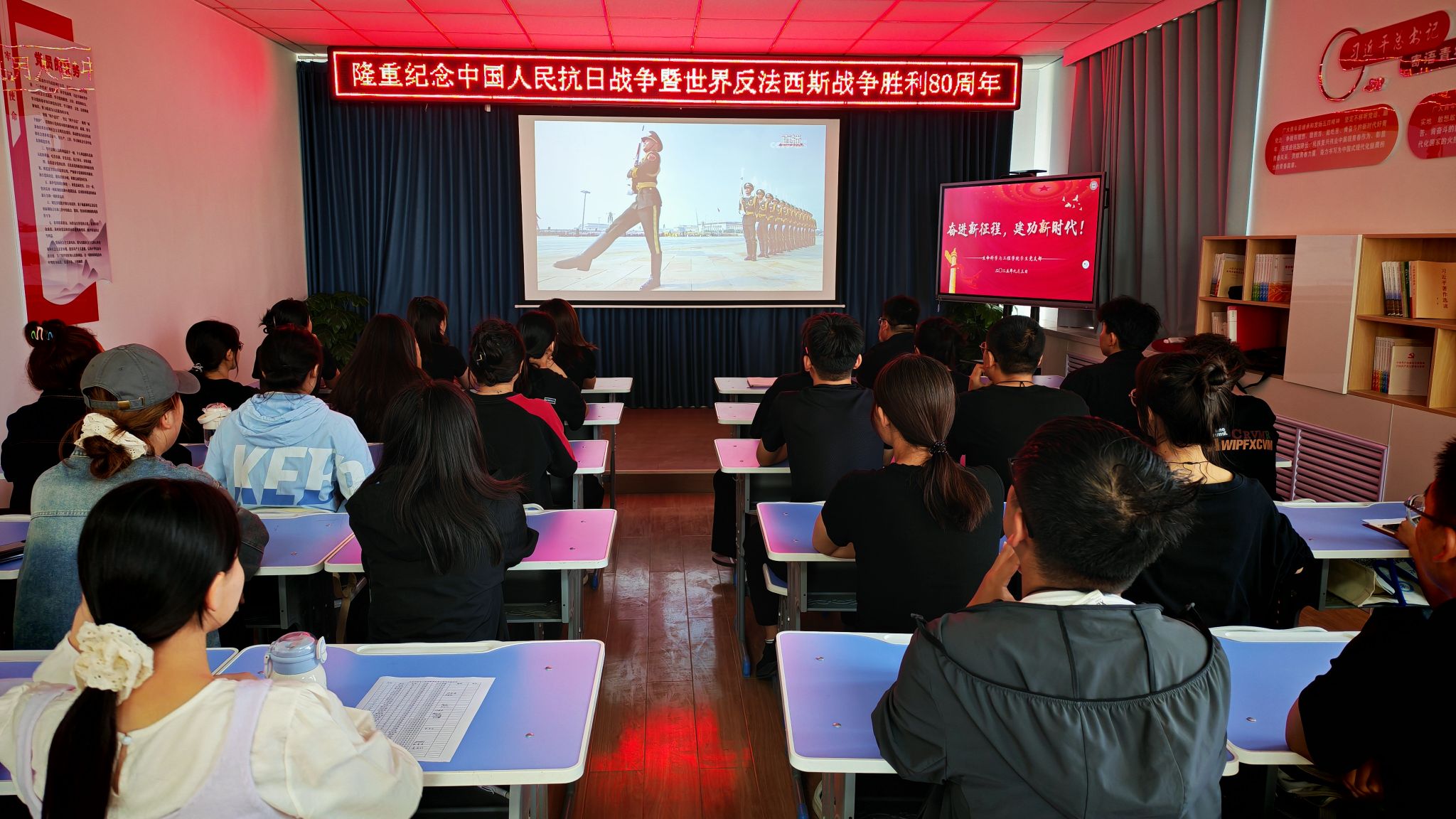 9月3日上午,365英國(guó)上市官方網(wǎng)站學(xué)生黨支部組織全體黨員、共青團(tuán)員代表在六教402會(huì)議室集中收看中國(guó)人民抗日戰(zhàn)爭(zhēng)暨世界反法西斯戰(zhàn)爭(zhēng)勝利80周年大會(huì)閱兵儀式直播,共70余人參加。