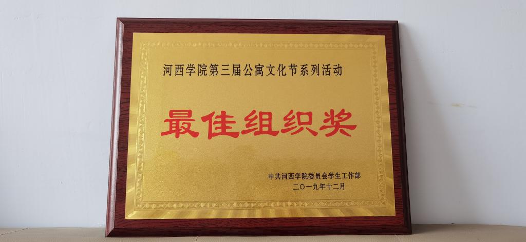河西學(xué)院第三屆公寓文化節(jié)系列活動(dòng)最佳組織獎(jiǎng)