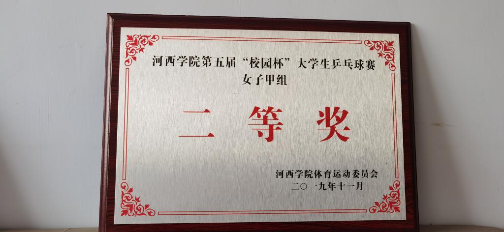河西學(xué)院第五屆“校園杯”大學(xué)生乒乓球賽女子甲組二等獎(jiǎng)