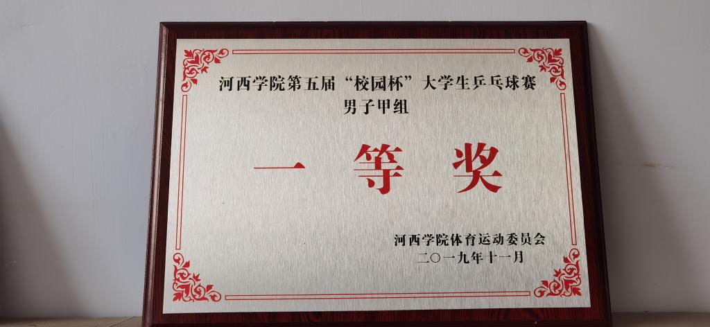 河西學(xué)院第五屆“校園杯”大學(xué)生乒乓球賽男子甲組一等獎(jiǎng)