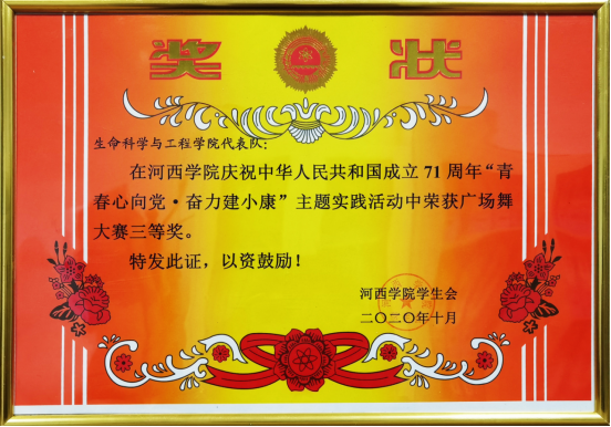 河西學(xué)院慶祝中華人民共和國(guó)成立71周年“青春心向黨·奮力建小康”廣場(chǎng)舞大賽三等獎(jiǎng)